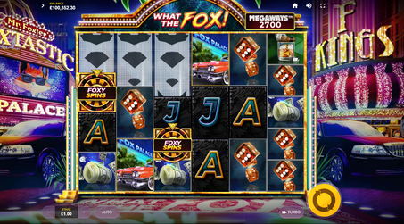 The base game features enormous wins with a maximum of 117,649 megaways available to the player in the base alone it is made up of 6 reels with between 2 and 7 symbols on each reel. With characters that match the Vegas theme from a drink on the rocks, to a stack of dollar bills and of course dice. On top of that random wild reels can also land which carry a multiplier of up to 7x increasing your maximum win potential to over 10,000X you will need to land three foxy free spins symbols to unlock the bonus game.